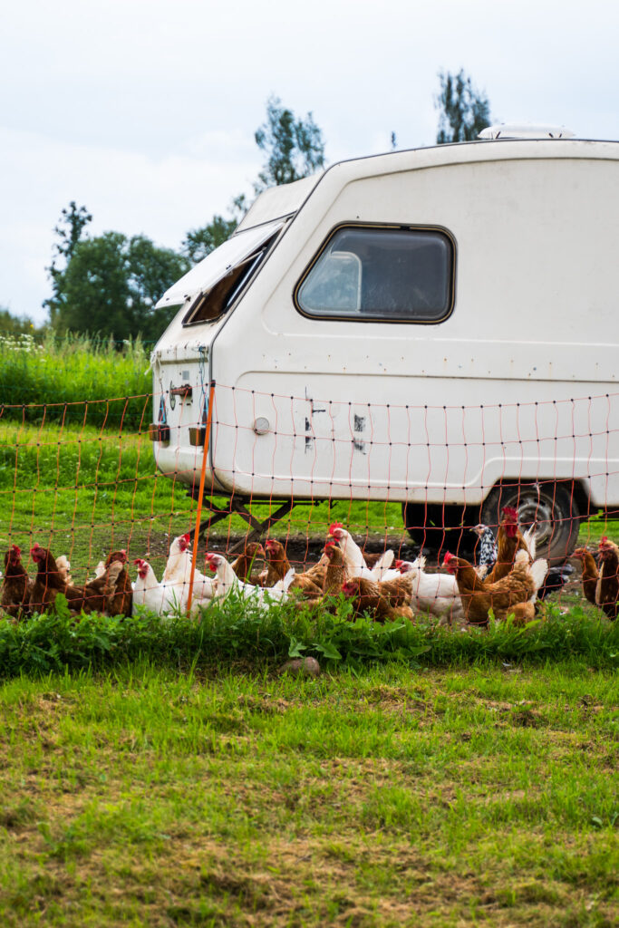 Lisaks köögiviljadele kasvatatakse Kasaritsa Aias ka kanu. “Nad pakuvad meile silmailu, väetist ja muidugi mune,” kommenteerib Martin. Munad on minev kaup, sest tavaliselt on need ette tellitud. Harva saab mõni neid soovi korral ka enda köögiviljakastiga kaasa.